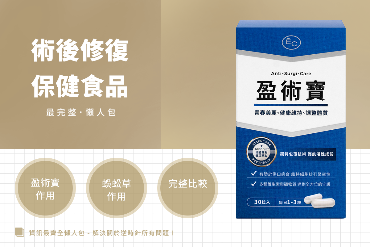 手術無論大小,術後修復都是關鍵環節。從消腫、抗發炎到組織修復,身體需要的不僅是休息,更是營養上的補充。除了醫師的術後照顧,近年越來越多人開始重視「術後專用保健食品」的輔助效果。 在術後保養的選擇中,蜈蚣草作為一款歷史悠久、源自中醫的草本藥材,長期被應用於消炎與調理體質;而盈術寶則是近年新推出的保健食品,結合多項成分,專為現代人術後修復需求所設計。